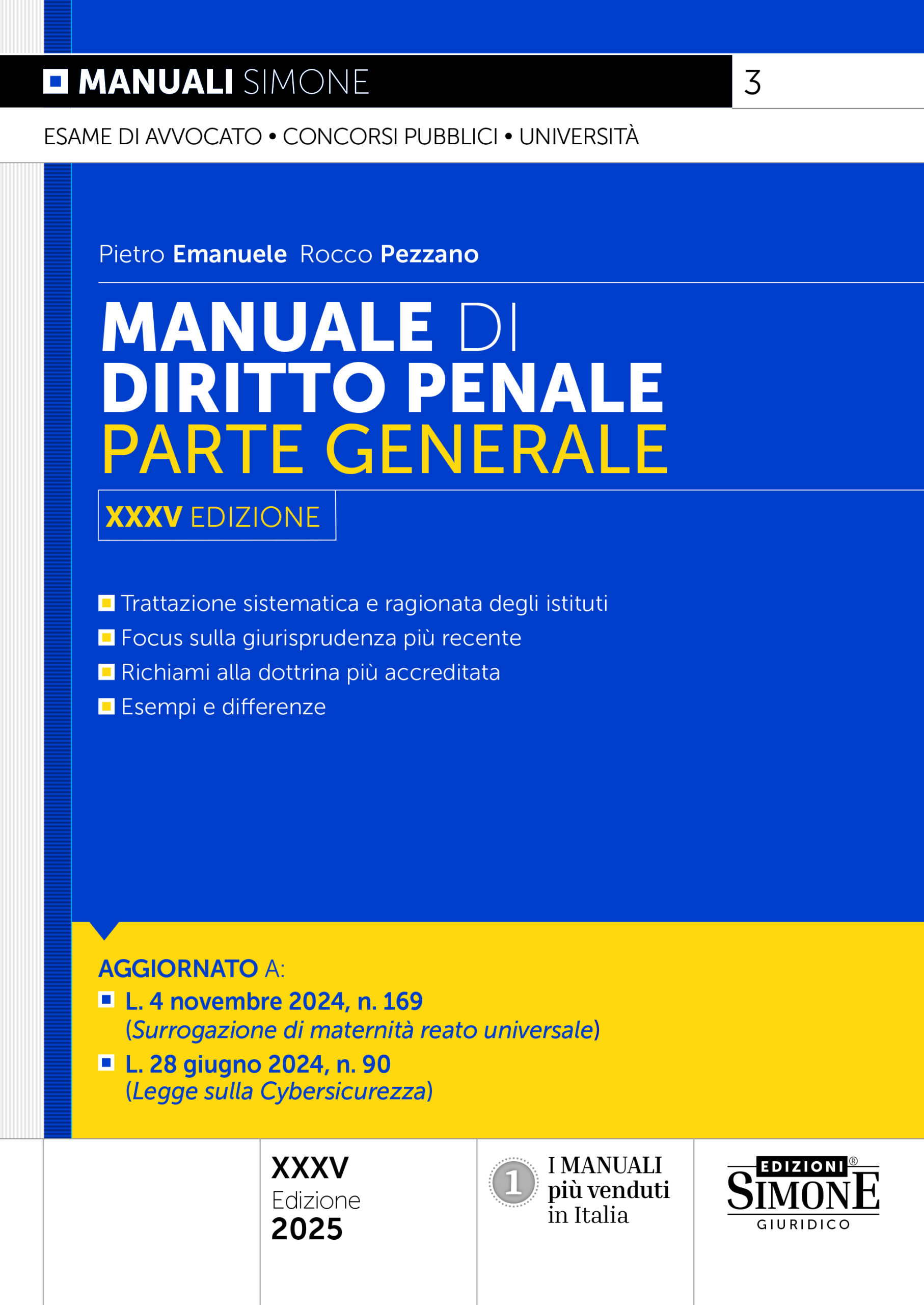 Il Manuale di Diritto Penale, Parte generale, giunto alla XXXV edizione, si caratterizza per l’esposizione chiara e completa della parte generale del diritto penale, alla luce delle più recenti novità normative e dei più significativi orientamenti di dottrina e giurisprudenza.